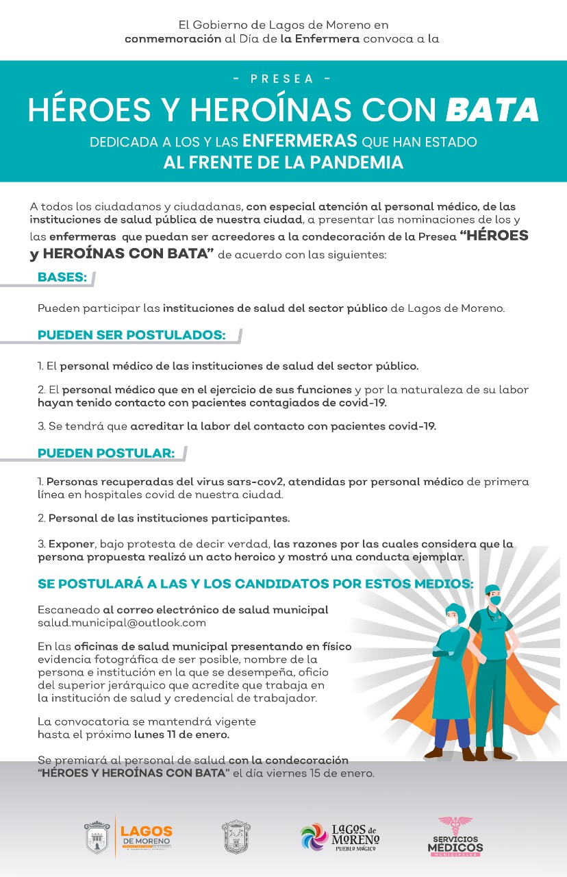 Las personas participantes deberán acreditar su labor en el área de la salud, y podrán ser postulados por personas recuperadas del coronavirus o personal de las instituciones médicas.